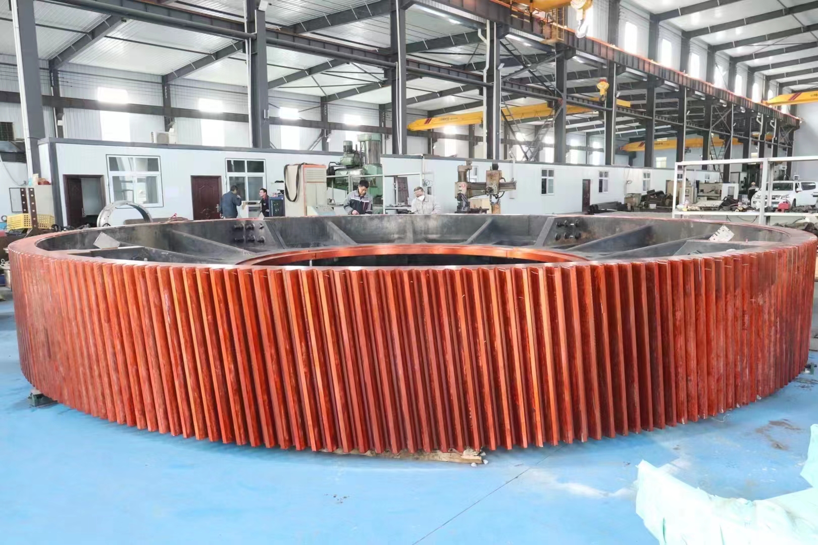大齒輪/大齒圈是回轉(zhuǎn)窯、球磨機(jī)的主要部件,需要長(zhǎng)時(shí)間運(yùn)行,因此,在實(shí)際生產(chǎn)中,騰飛鑄鋼對(duì)大齒圈這一部件的質(zhì)量要求非常高。騰飛鑄鋼生產(chǎn)的耐磨大齒輪能夠根據(jù)客戶提供的圖紙和尺寸進(jìn)行各種型號(hào)大齒圈定制的加工生產(chǎn),歡迎廣大客戶前來(lái)參觀咨詢!