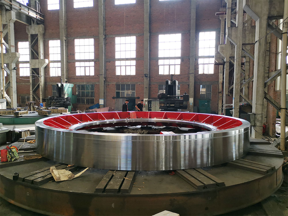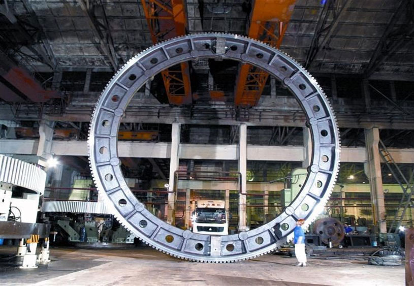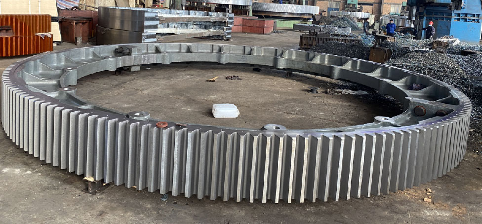 鑄鋼大齒輪是礦山、冶金、水泥、建材、煤炭、電力等行業(yè)的重要大型鑄鋼件,大齒輪是整臺設(shè)備的核心傳動零件,其質(zhì)量直接影響整臺裝備運行的安全和穩(wěn)定。隨著設(shè)備規(guī)格和傳動功率的不斷增大,大齒輪也在向著大型化方向發(fā)展,其直徑已經(jīng)超過10m,重量也接近百噸。為滿足客戶整臺設(shè)備高壽命、高可靠性以及效率高的要求,大齒輪的探傷與機械性能要求也越來越高。